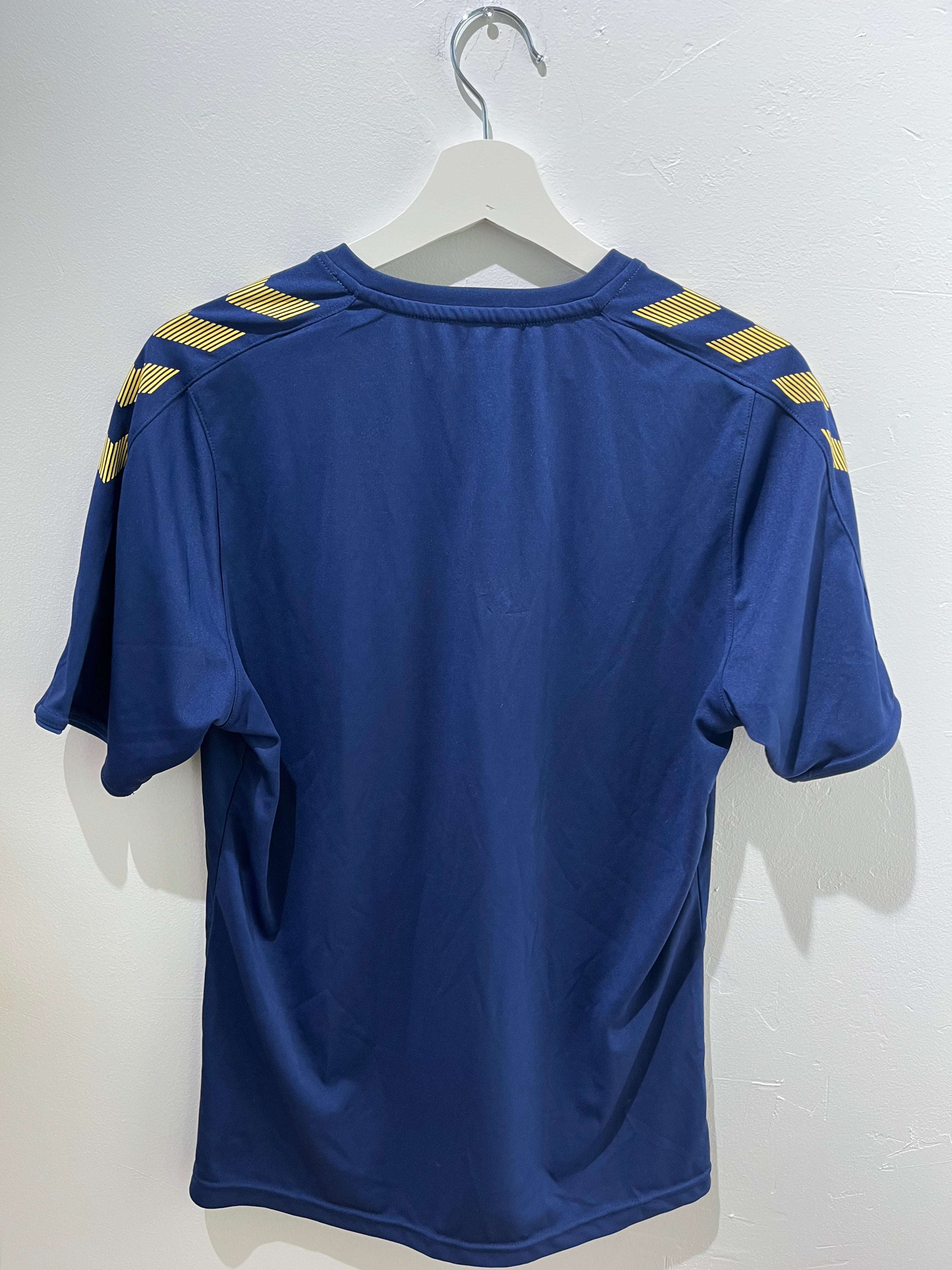 Brøndby IF Specialtrøje 2019/20 M bagfra, mørkeblå med gule striber på skuldrene.