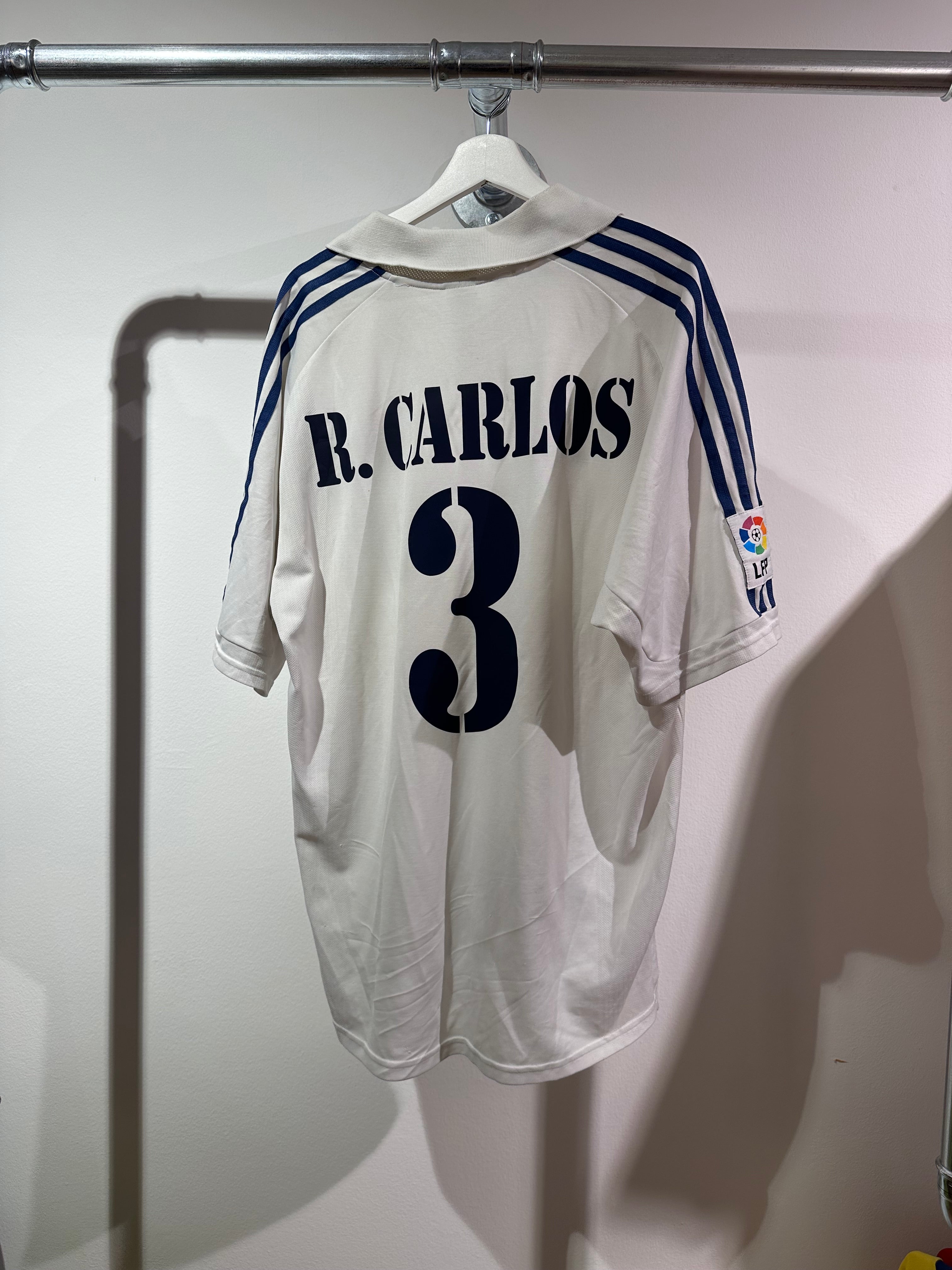 Real Madrid hjemmebanetrøje fra 2001-02 sæsonen med Roberto Carlos på ryggen i størrelse Large
